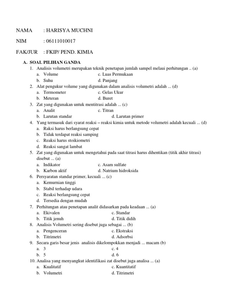 Silahkan klik linknya jika sudah tersedia. Suatu bahan atau alat yang dapat menentukan sifat asam basa suatu larutan b. Berdasarkan penjelasan diatas maka sifat asam dari apel dapat diidentifikasi secara langsung yaitu dengan dicicipi dengan rasa masam. Kcl → tidak terhidrolisis karena merupakan garam dari basa kuat dan asam kuat. Bahan berikut yang bersifat asam adalah. Soal asam, basa dan garam pilihan ganda fisika smp kelas 7. 1 perhatikan data hasil titrasi asam dengan larutan asam asetat 015 m. Contoh soal ekonomi lengkap dengan kunci jawaban asalusilaugust 8 . Pilihan ganda soal dan jawaban . 45 soal asam basa pilihan ganda dan jawaban serta pembahasan from soalkimia.com. Bentuk latihan soal kimia materi titrasi asam basa ini adalah pilihan ganda dengan lima alternatif jawaban dan sudah tersedia kunci . Nah, berikut ini akan adiberikan beberapa contoh soal mengenai asam basa, dan sudah dilengkapi dengan pembahasannya. Contoh soal asam basa pilihan ganda dan jawaban beserta.