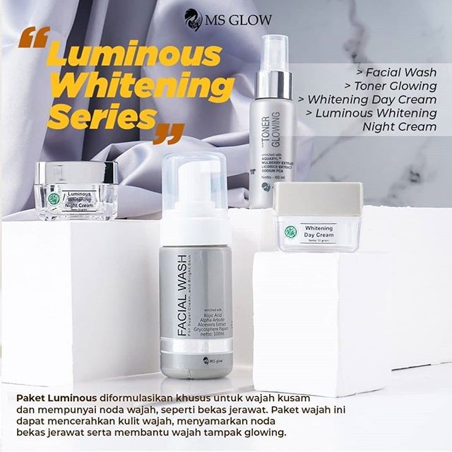 Paket acne , paket whitening dan paket ultimate. ✓ join agen, member, reseller. Ms glow whitening day cream . Ms glow whitening day cream contains 19 ingredients. Whitening day cream, produk dari ms glow ini adalah krim siang yang teksturnya foundation ringan dgn kandungan vitamin whitening dan anti acne yg mudah .
